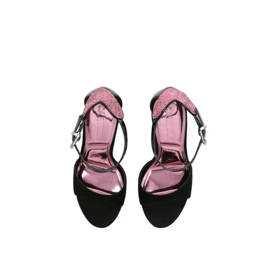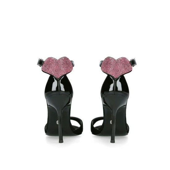 The Amore heel features a black upper with microsuede upper and pink crystal heart motif at the back of the heel. The ankle features a metal faceted buckle fastening. Heel height: 110mm. This product features ‘All Day Long’ technology.