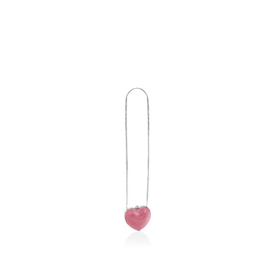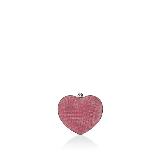 The Amore is a structured clutch in the shape of a heart. The exterior features an all over pink crystal embellishment. 13cm (H), 14cm (L), 5cm (D). Strap length: 124cm. Strap drop: 61cm. Silver tone chain strap. Clasp closure. Can fit classic credit cards.