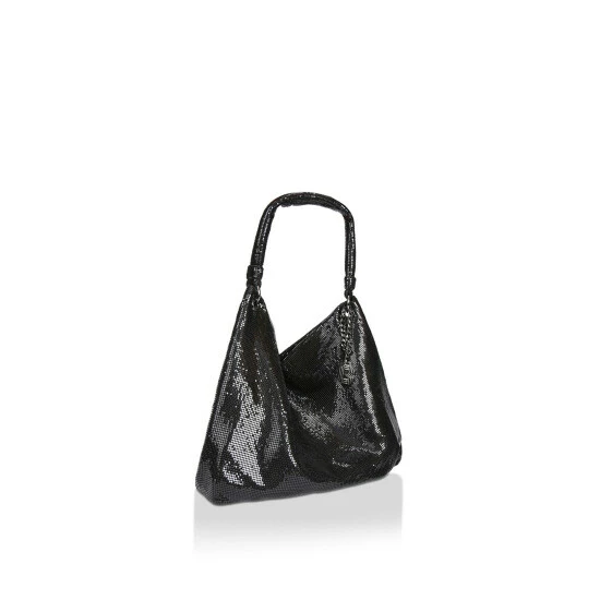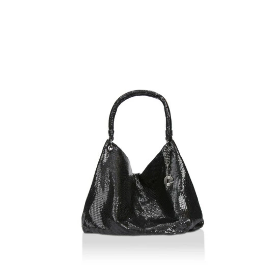 The Armour Hobo is crafted with a black chainmail exterior. There is a gunmetal Signature C chain charm that attaches to the strap. 37cm (H), 47cm (L), 3cm (D).