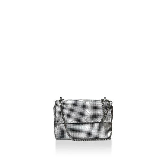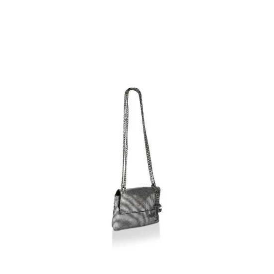 The Armour Pouch is crafted with a gunmetal chainmail exterior. There is a gunmetal Signature C chain charm that sits across the front of the bag. 12cm (H), 17cm (L), 1cm (D).
