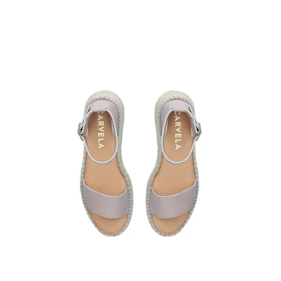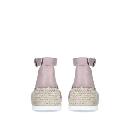 This Chase Sandal from Carvela is crafted in blush leather with open toe and gold buckle ankle strap. The sole is rope detailed and sits at 7.5cm.