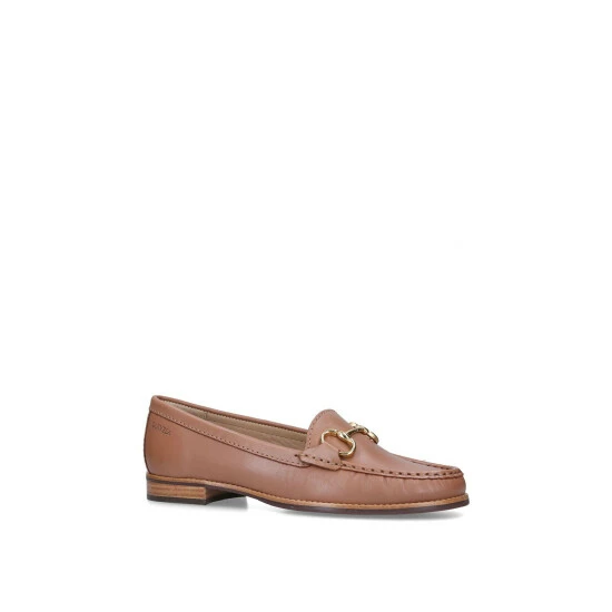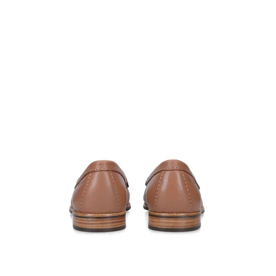 The Click 2 loafer arrives in a soft camel shade. The footbed is cushioned for comfort with a low wood effect block heel. The front is adorned with gold horsebit detail.