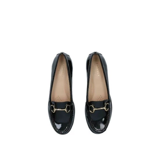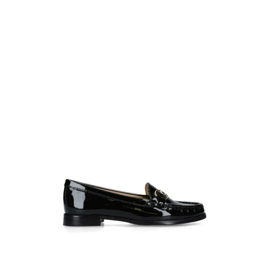 Add Click 2 from Carvela Comfort to your formal collection for elegant polish that goes with everything. Forged in high-shine black patent leather, this smart glossy loafer features gold-tone snaffle bit trim to the vamp and a slight heel.