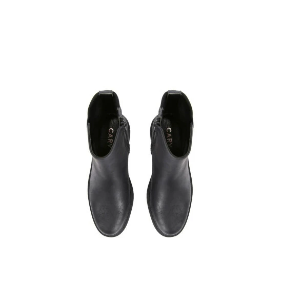 Dash 50/50 from Carvela is a low heel ankle boot in black leather.