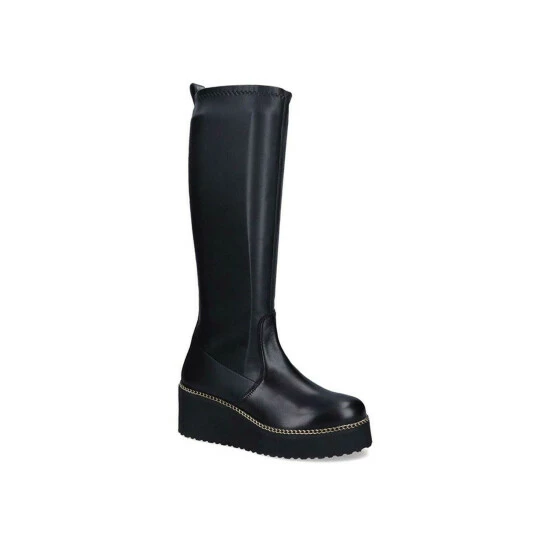 The Highrise High boot features a black leather upper which sits higher on the calf. The midsole features a golden chain detail. Sole height: 60mm.