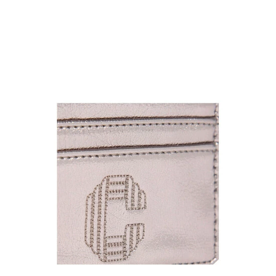 The Icon Card Holder is crafted from a metallic gunmetal textile. The front features a stitched Signature C logo. 8cm (H), 10cm (D), 1cm (L).