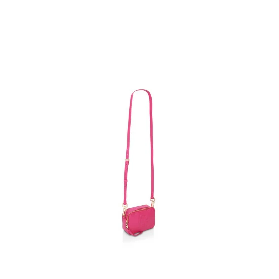 The Icon Mini Cross Body arrives in fuchsia with a stitched Signature C logo on the front and gold tone branding on the back. Dimensions: 11.5cm (H), 17cm (W), 6cm (D)