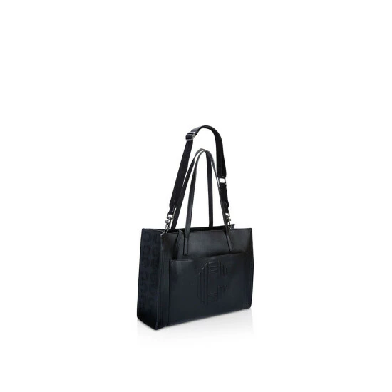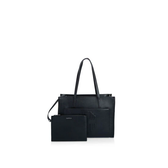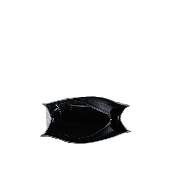 The Icon Shopper features a black structured exterior. The large front pocket has Signature C stitched branding and the gussets features embossed branding. Dimensions, 29cm (H), 37cm (D), 15cm (L).