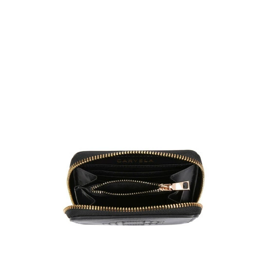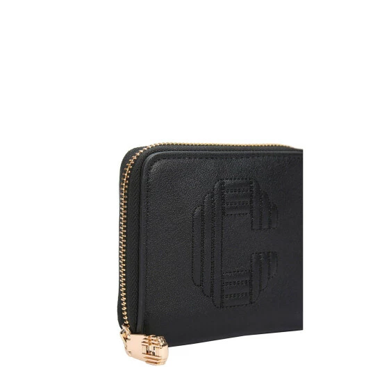 The Icon Square Wallet is crafted from a black leather alternative. There is a stitched Signature C on the front as well as gold tone zip pull. Can fit up to four classic cards. Dimensions: 11cm (H), 12cm (L), 2cm (D)