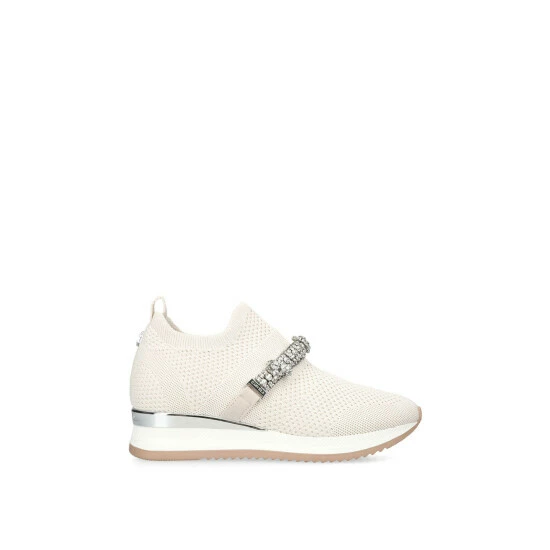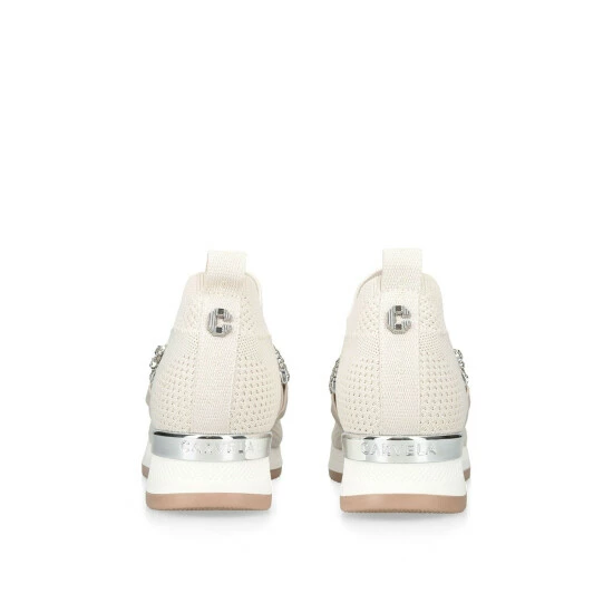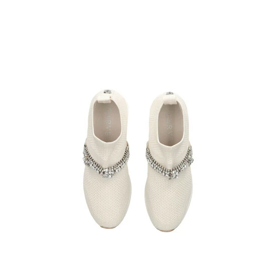 The Janeiro Jewel features a bone knit upper with slip on ability. The front features a crystal embellished strap whilst a silver branded panel is at the heel.