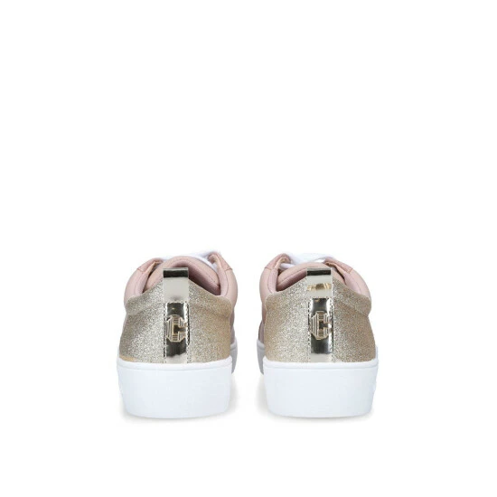 The Jupiter trainers by Carvela are a classic low top lace up style, there is a glitter heel panel and gold pull tab detail.
