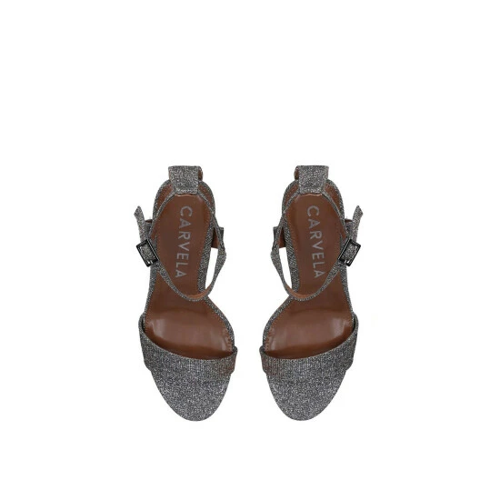 Woven with bronze glitter, the Kolluding strappy heels from Carvela feature a rounded toe and thin straps with buckle adjustability around the cut out ankle. The thin heel sits at a comfortable mid height 85mm.