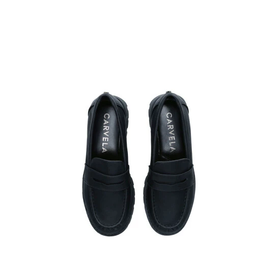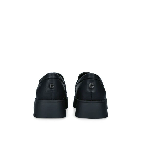 The Kool loafer arrives in a black slip on style. The back of the ankle features a gunmetal Signature C pin.
