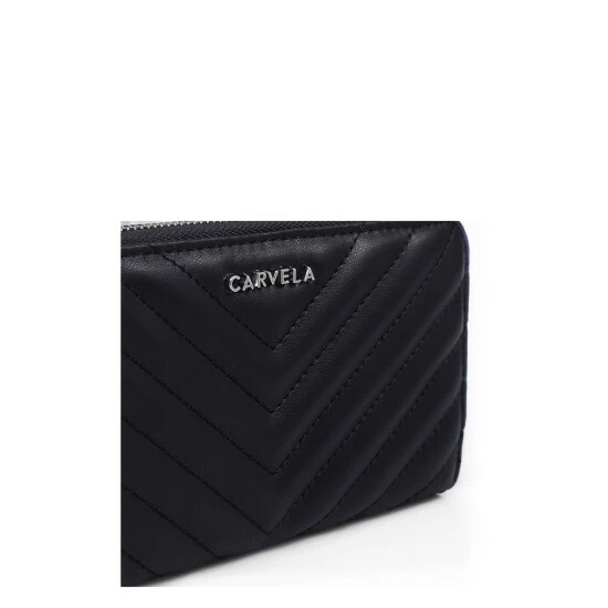 The Lara Purse features a black matelassé stitched quilting. The zip closure opens to an interior with multiple card slots and zipped compartment.10cm (H), 19cm (W), 20cm (D)