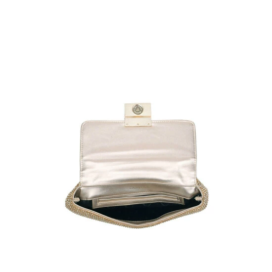 Perfect for any evening occasion, the Bailey Soft Quilted Shoulder Bag from Carvela uses a gold exterior perfectly dressed in small clear gems for added glamour. The gold closure opens to a lined interior with small open pocket. Height: 150mm Width: 280mm Depth: 60mm