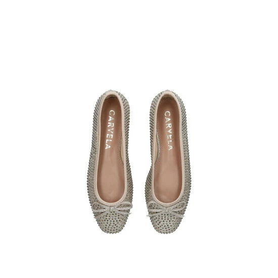 The Lily Ballerina flat shoe features a camel suedette upper with bow detail on the toe. The back of the ankle features a micro gold tone Signature C.