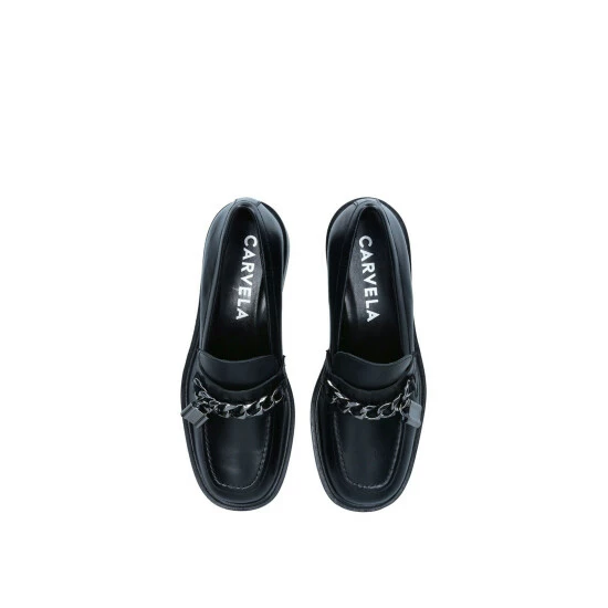 The Lock loafers are a formal style in black leather with rounded toe. The insole is quilted in design.