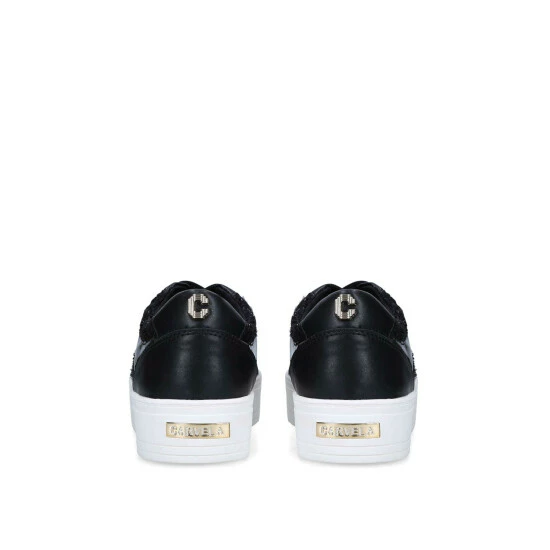 The Park trainers arrive in black with a lace up front. The back of the heel features a small detail, with branding acrossthe side, with a white chunky sole.