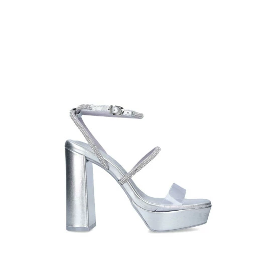 The Standing Bling arrives in silver, set on a platform sole with a high block heel. The upper showcases delicate silver straps with crystal embellishments and a clear vinyl strap across the toe.SyntheticHeel Height: 120mmBuckle fastening to ankle