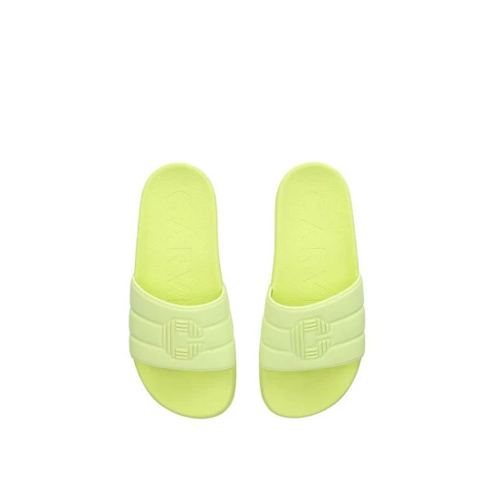 The Triple C Slider sandals are a convenient pair to wear around the pool with their rubber exterior in lime. The strap is wide across the foot topped with raised Triple C logo. The footbed is curved with texture for grip.