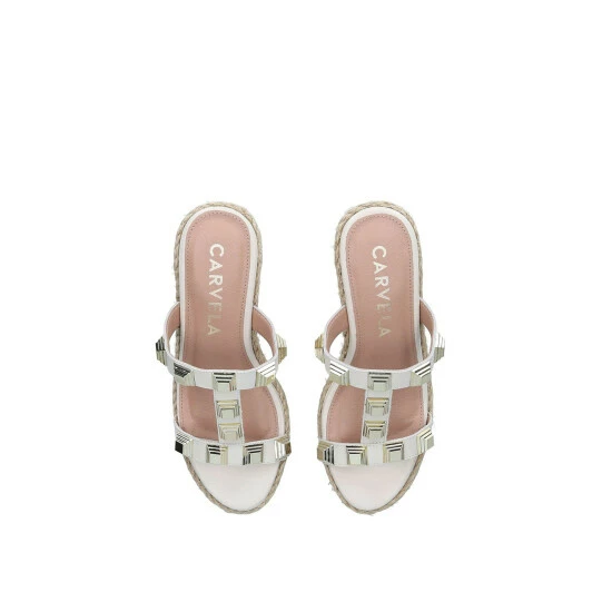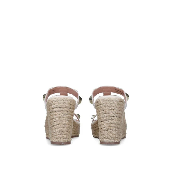 Carvela’s Voice Wedge are a bone sandal with large gold studs across the foot straps. The heel is in a 11cm wedge style with slight platform effect.